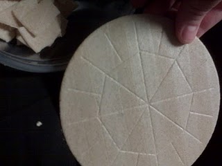 '. . . when these are "broken" after the Consecration of the Mass, during the "Breaking of the Bread" that large fragments of the host fly all over the place, on clothes, corporal, floor and elsewhere. I saw this happen this morning. . . I was breaking the large breads and realized that against my black trousers and the florescent light, I could see large and small fragments flying everywhere! If I had filmed this in slow motion, it would look like these fragments would become like an aerosol spray or a sneeze from a person’s mouth filmed in slow motion. One can’t see this during Mass with the white altar cloth background and the lighting of the Church. I have already made a decision no longer to use the large, whole wheat hosts because I would find large fragments on the corporal after the Breaking of the Bread. But I had no idea to what extent this was happening. On top of that, the broken hosts from the large one have a very jagged edge with large fragments easily falling as these are given to communicants.'